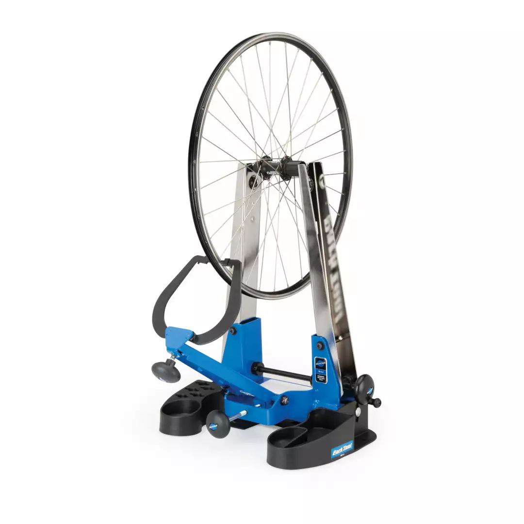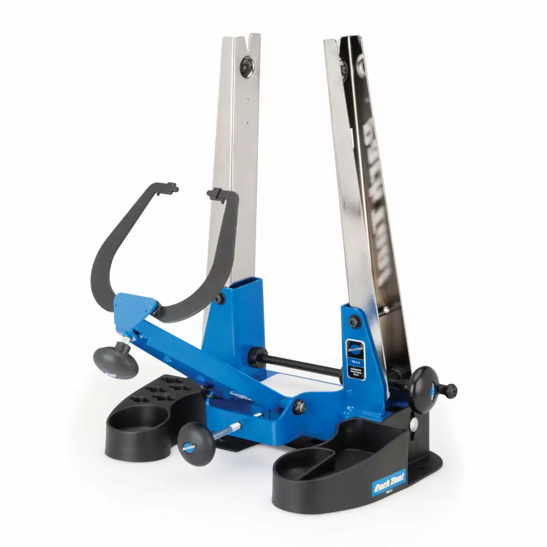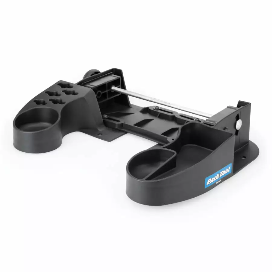Securely holds the TS-4.2 Professional Wheel Truing Stand and tilts 20 degrees from front to back for comfortable wheel work and sight lines at any bench height. Features a wide, sturdy base, small parts compartments, spoke wrench holders, and is constructed of a durable composite material.