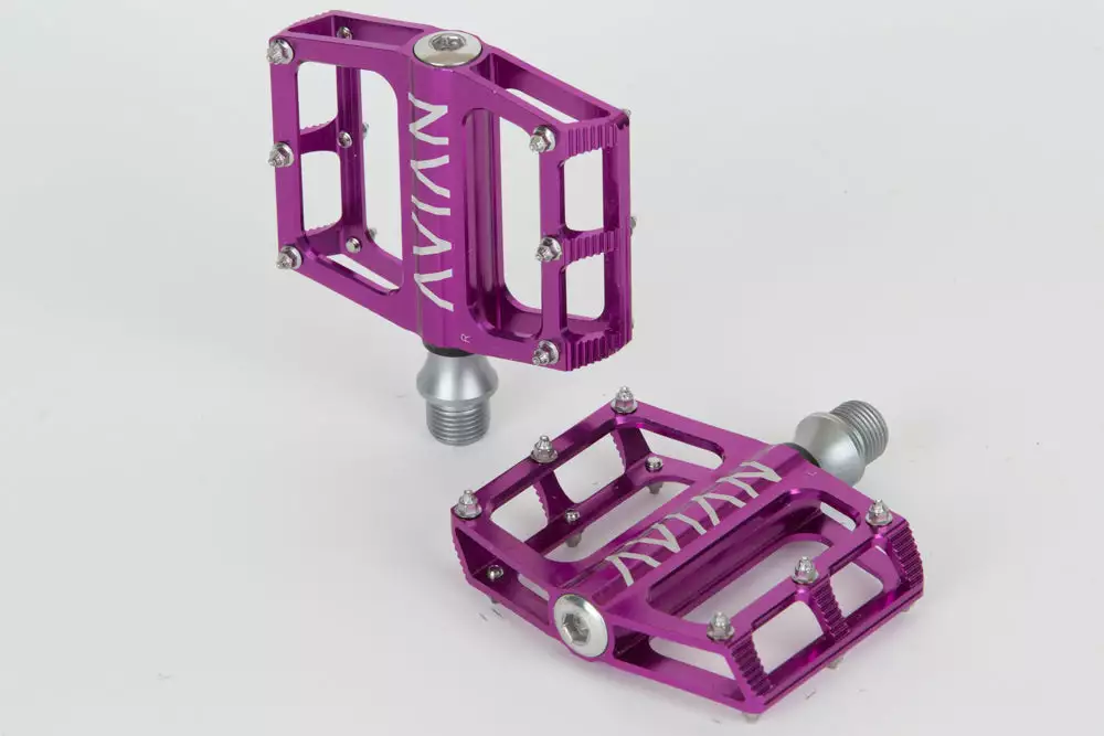 The Avian Pariah Platform Pedals feature CNC machined 6061 aluminum pedal bodies, heat treated chromoly spindle, removable pins and sealed bearings. These pedals lightweight, geared for racing and sexy enough to bring platform pedals to the forefront of racing around the world. Â