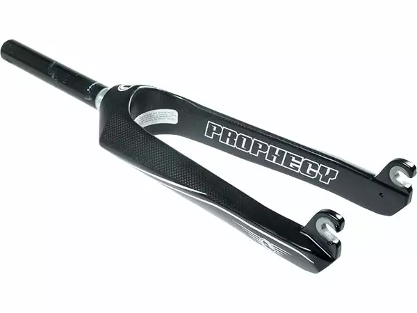 Our new Prophecy 24″ carbon fork named “4RK” with 1-1/8″ CrMo steerer with white stickers color artwork design 60% matt fitting all our Scud color frames. Weight: 690gr (1,52lbs or 24,34oz). This new carbon fork gets the characteristic to have an oversize crown diameter of 50mm, bigger and so a lot stiffer than all the other current forks on the market. In additional of this technical advantage, the cutting edge aesthetic design of our new Prophecy fork, introduce for the first time in the market a fork with a perfect connection between the frame and the head tube. This is the ideal fork for your carbon Scud Pro, ProXL, ProXXL.