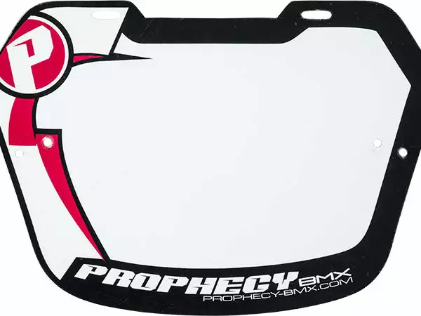 The Prophecy Front BMX number plate features flexible yet durable plastic with Prophecy BMX logos. The Front plate also features reversible sides with a white background on one side and yellow on the reverse side.