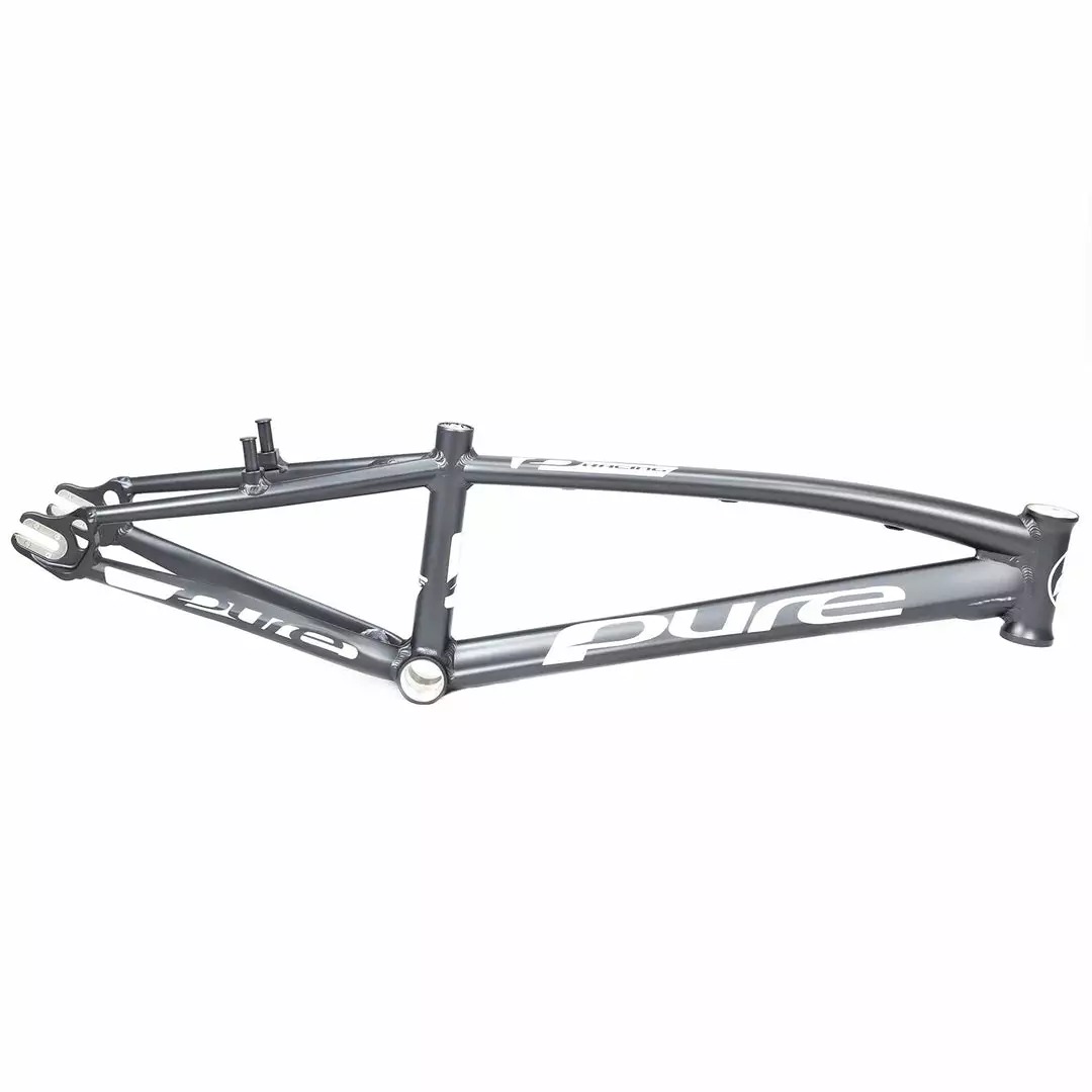 The Pure V6 Race Frame Gun Metal Grey is a 6061 aluminum frame with all hydro-formed tubes. Hydro-forming allows for very precise, very strong construction. The result? A perfectly stiff, brilliantly responsive frame that maximizes every single pedal stroke. Each frame includes a disc brake adapter, so no need to worry about which brake type you want to use now or later. Just don’t misplace that adapter! Pure has created an on-point frame geometry that will keep you stable whether you’re in the air or on the ground…or half on the ground. If you’re ready to seriously maximize your potential on the track, then you’re ready for the V6.