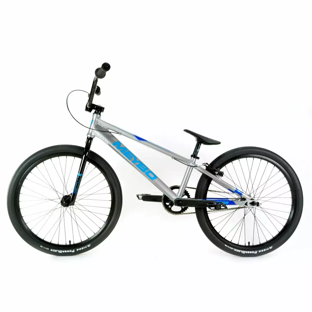 The Meybo Clipper Cruiser 24″ BMX Race Bike-Grey/Blue/Cyan is the budget minded sibling to Meybo’s race winning Holeshot model. Keeping it in the family, the two model’s frames share the exact same geometry. You guys look SO alike! Clearly what sets the Clipper apart is the accessible price point for what is, let’s be honest, an incredible bike. Features a bunch of SD Components. The fork, stem, handlebars, seat, crankset…all from SD. Race ready Tioga Powerblock tires provide a solid bike-track interface.