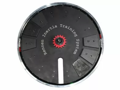Inertia Wheel Sprint Training also offers something that no other form of resistance training can provide. From zero to max speed the sprint will feel very hard while you are accelerating this high inertia wheel. Once at a constant speed the IT wheel feels easier to pedal than a traditional wheel at the same speed. The result is that you get the benefits of an uphill and downhill sprint all on flat ground while using one setup. The Rennen IT system is intended for flat ground sprints (Do not try to ride this at the track!)