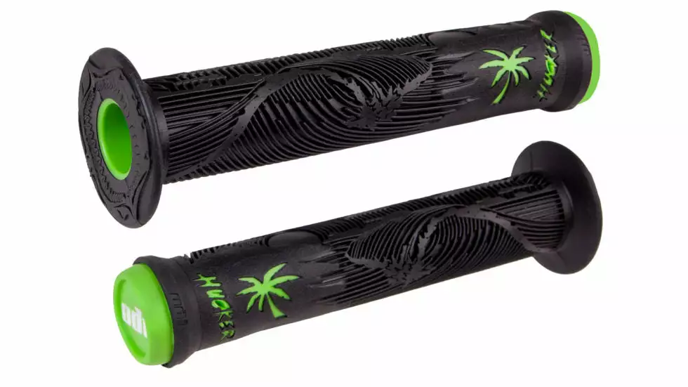 The S&M Signature Hucker Grips brings the SOCal attitude of Mike “Hucker” Clark to life. Designed for both aesthetics and performance, the 160mm grip’s California-inspired beach scene has been intricately laid out to provide traction and padding in key areas where they are needed most. The grip also features a unique two material design that allows for improved bar adhesion and less grip slippage while still maintaining soft vibration absorbing outer layer. Comes with coordinated end plugs.
