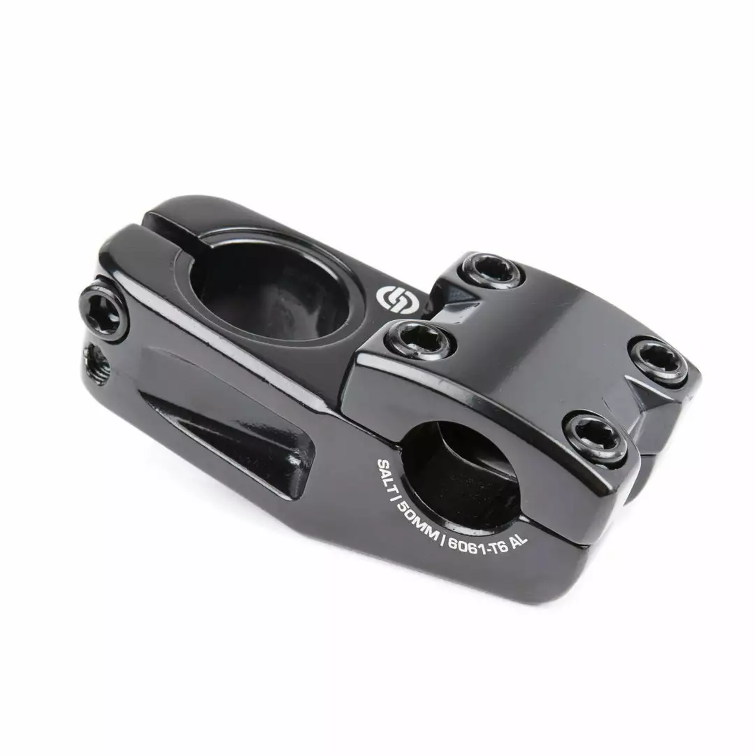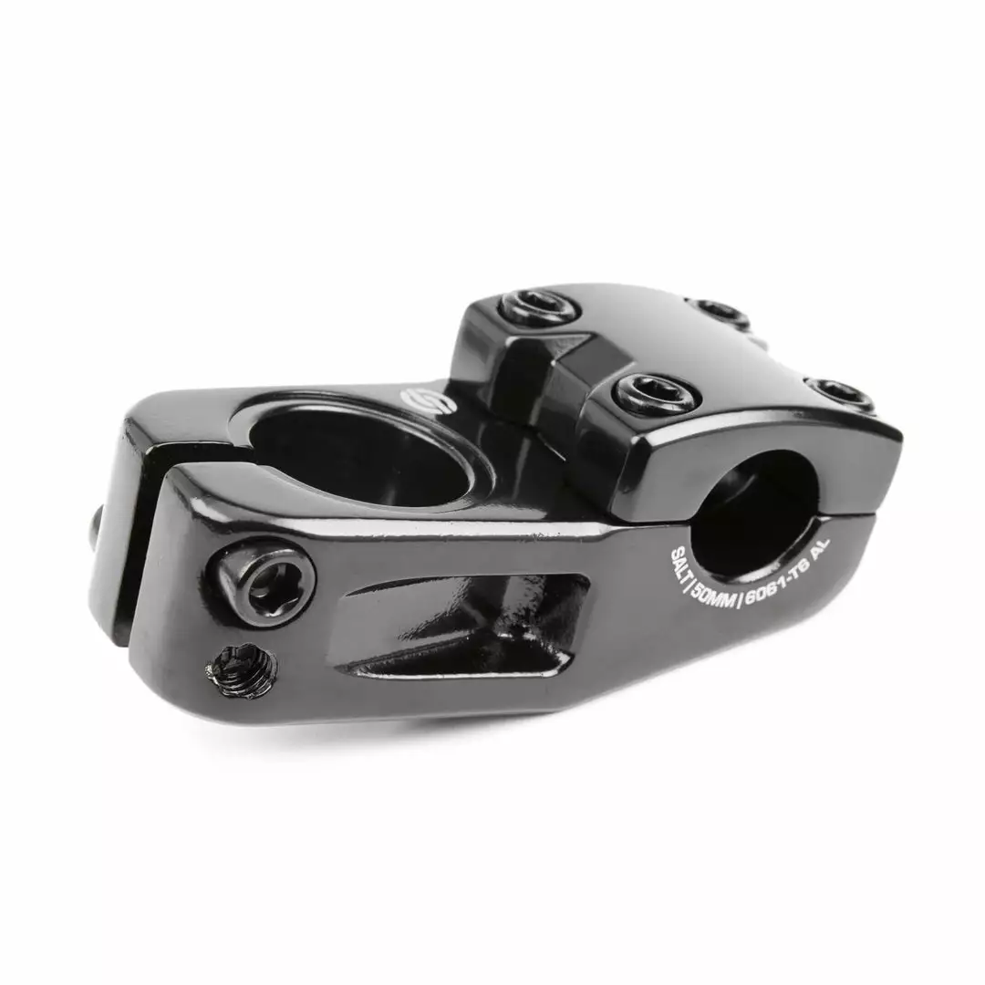 The Salt Pro V2 Topload BMX Stem has a 50mm extension and 33mm rise. They have removed some material in the center of the stem and on the sides for a little weight saving so they could increase the width of the clamping area slightly for a rock solid grip. Features Salt’s Shark Tooth Clamping and 6061-T6 forged alloy.