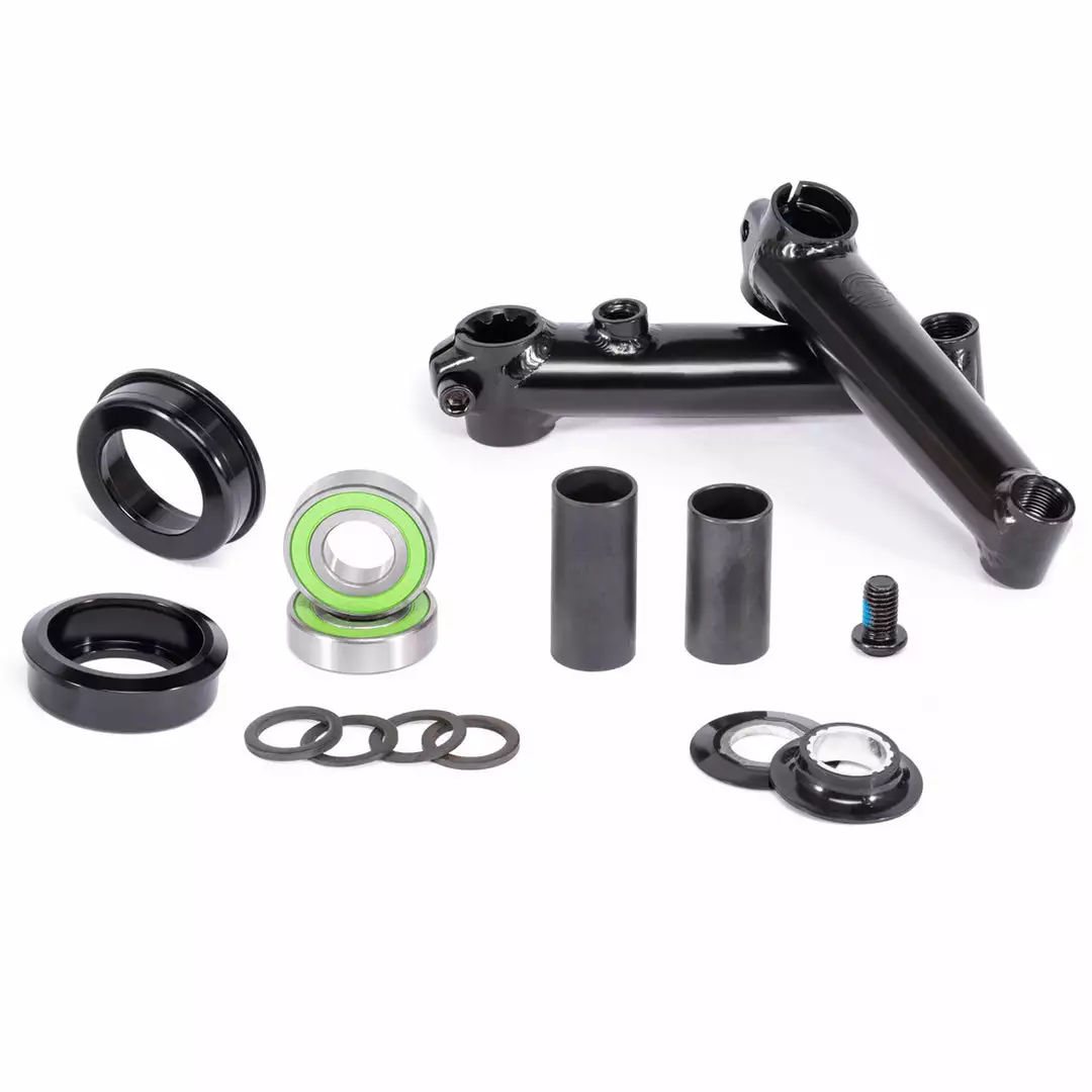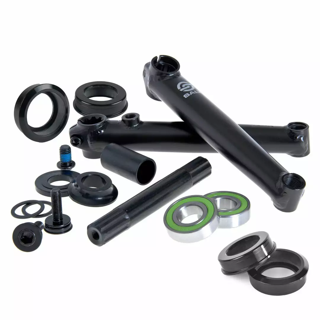 The Salt Rookie BMX Crankset includes all the parts you need to replace or upgrade your crank. Includes heat-treated, 175mm slim-arm cranks, and a sealed mid-sized bottom bracket with adapters for American-sized BB shells.