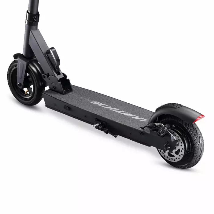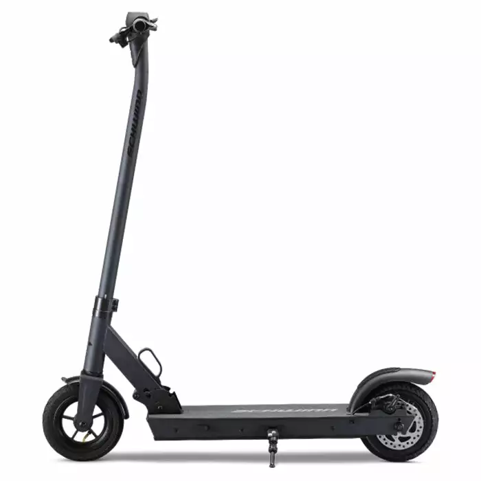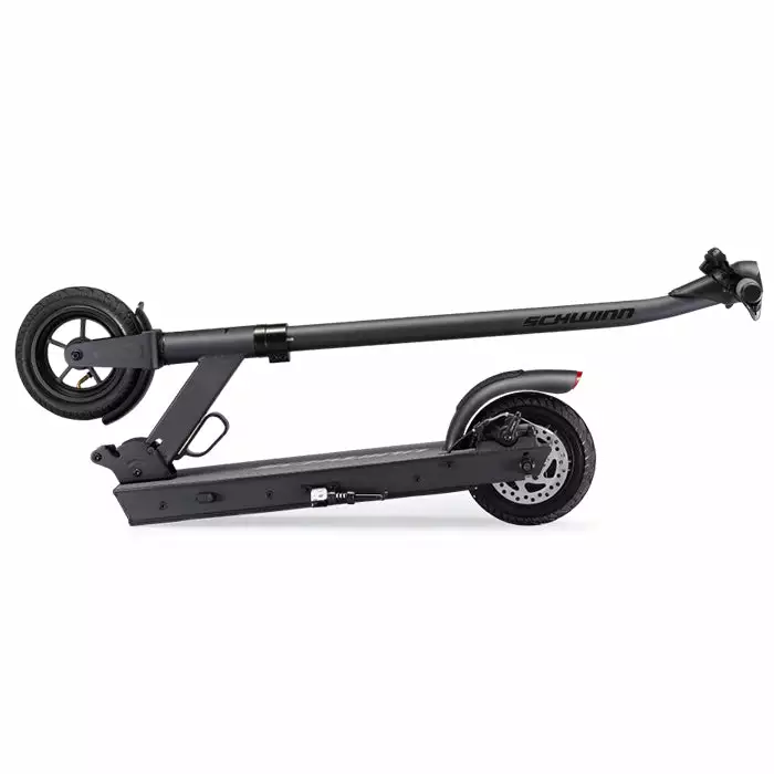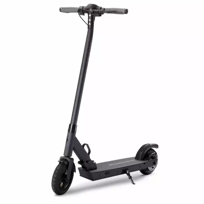 The day starts with you. Set the tone. Break free from the status quo and upgrade your commute with the Tone 1 electric scooter by Schwinn. The Tone 1 makes it possible to get to work or class with effortless efficiency so you can use your day to its full potential. Just hop on the Tone 1’s lightweight aluminum frame that’s robust enough for daily use, yet light enough to carry in one hand. Use the handlebar control to select your speed (up to 15 mph) and enjoy a smooth ride on 200mm air filled tires while the rear wheel hub motor does all the work. The hand operated disc brake delivers crisp, secure stops so you’re always in control. And there’s no need for paid parking or bike racks – the Tone 1 folds for compact storage, perfect for under a desk or carrying on public transportation. The Tone 1 is powered by a rechargeable lithium battery that lasts up to 11 miles on a single charge, with an included charger that fits any standard household outlet for added convenience. You’ve got places to be. Optimize your commute with the Tone 1. Enjoy the freedom of riding a Schwinn.