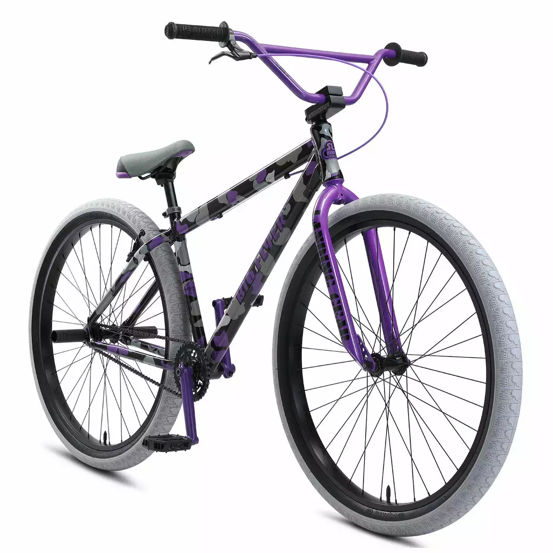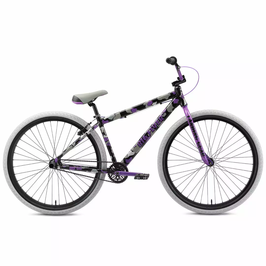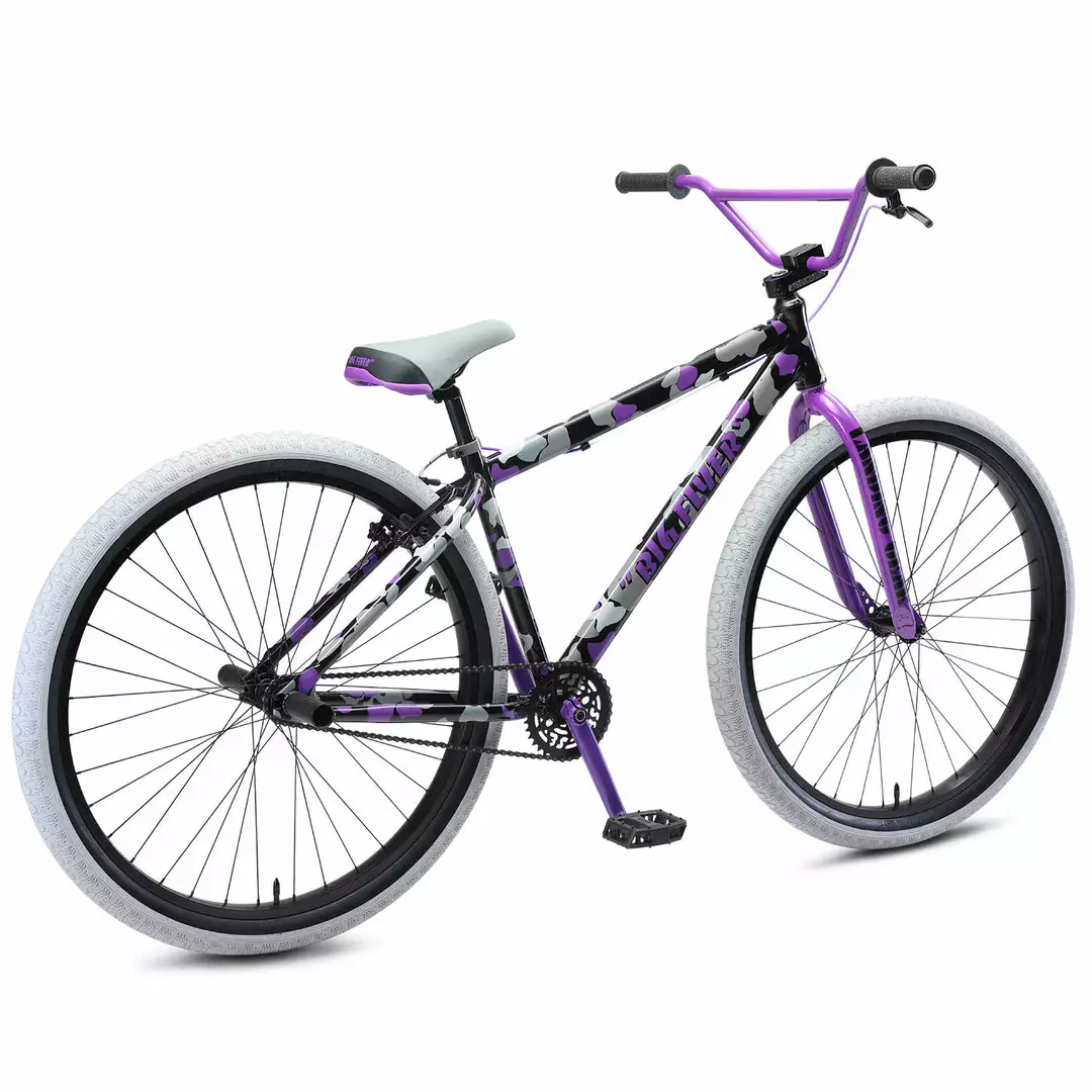 The SE Big Flyer 29″ BMX Freestyle Bike-Purple Camo is what the SE peeps have been waiting for all year. It continues to cruise at a smooth speed. The bike matches up perfectly for the old-timers and youngsters. This year’s bike is tougher than ever with the addition of an internal headset and mid-bottom bracket. It is reliable, great appearance, durable parts which makes it an all-around great bike. It is time to see those wheelies and big smiles. Ride safe.