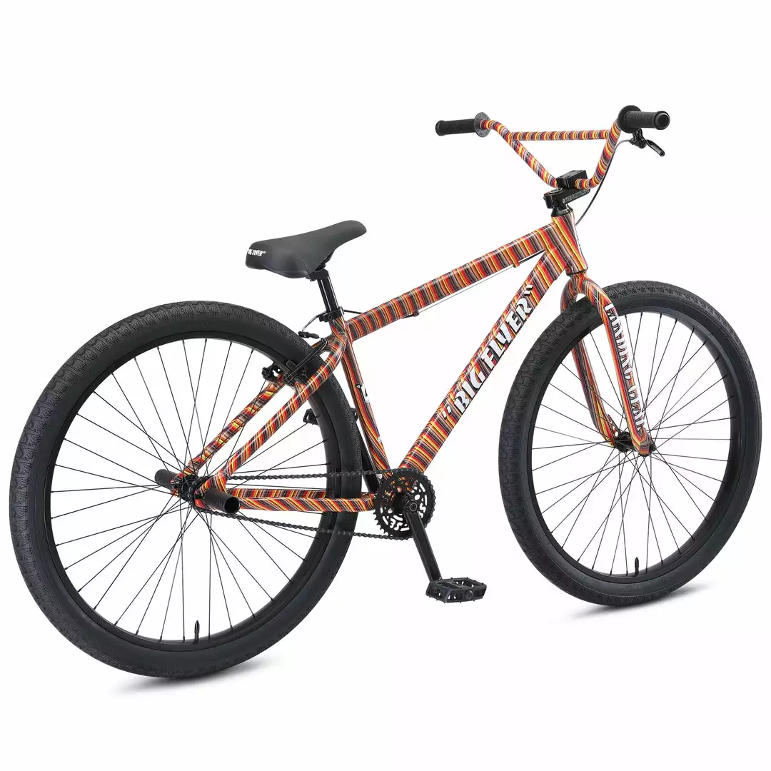 The SE Big Flyer 29 BMX Freestyle Bike-Striped is what the SE peeps have been waiting for all year. It continues to cruise at a smooth speed. The bike matches up perfectly for the old-timers and youngsters. This year’s bike is tougher than ever with the addition of an internal headset and mid-bottom bracket. It is reliable, great appearance, durable parts which makes it an all-around great bike. It is time to see those wheelies and big smiles. Ride safe.