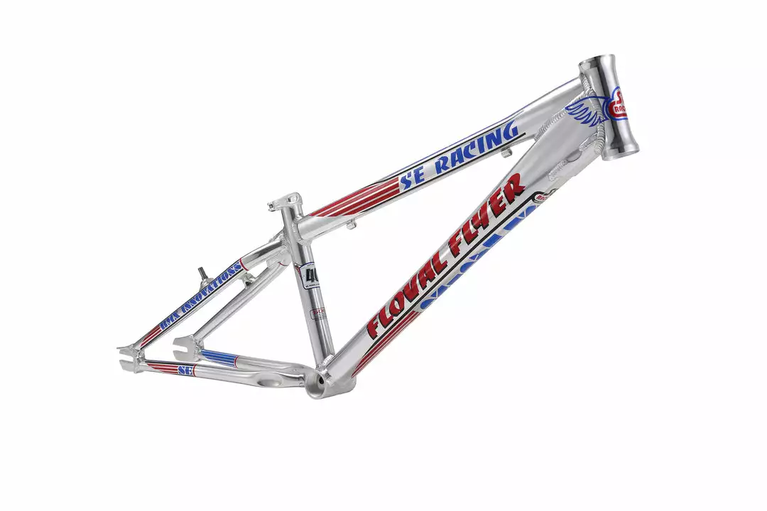 All-new lightweight 6066 aluminum frame built with floval top tube, bi-oval down tube, 1-1/8” – 1.5” tapered head tube, tapered rear stays, 20mm 3-D forged rear dropouts w/ built-in chain tensioners, and PF30 bottom bracket for maximum stiffness. | Comes equipped with 3 different sets of chain tensioner plates to accept hubs with 20mm, 15mm, or 3/8” axles. | Sealed Tange integrated headset. | Promax QR-1 Quick Release Seat Clamp. | Includes all-new “40 Years of Radness” SE Racing number plate. | 3.5 lbs