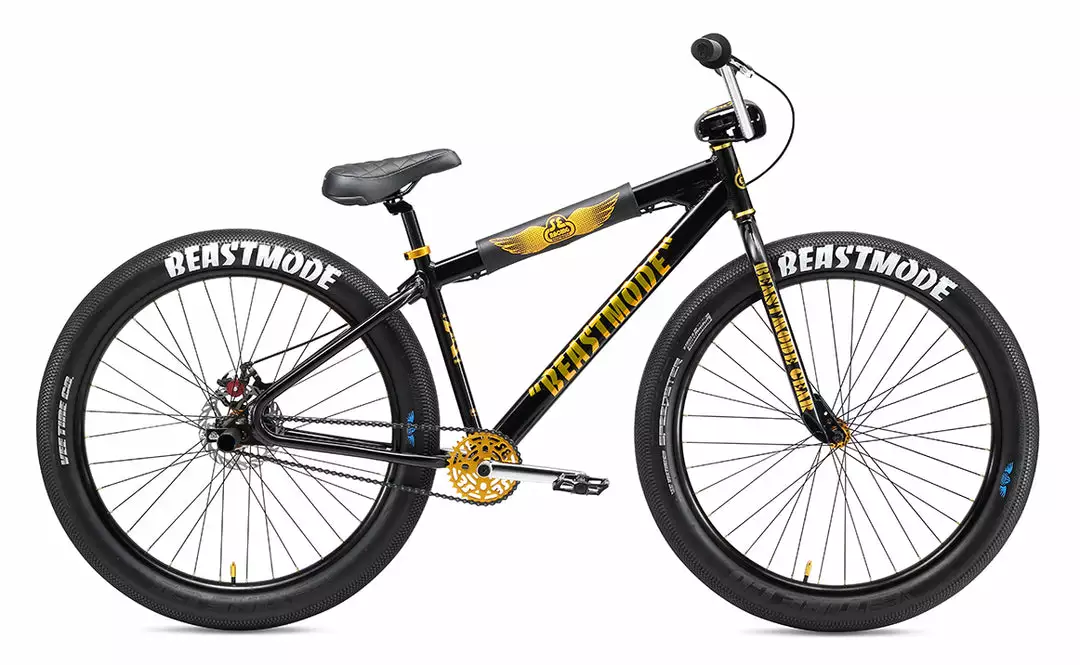 The SE 2018 Beast Mode Ripper is what you get when SE teams up with NFL Super Bowl champion and Oakland Raider Marshawn Lynch to design an all-new BMX rig. And the 27.5+ Beast Mode Ripper is just that. This beast of a bike is built around insanely big and powerful 27.5” x 3.0” Beast Mode Vee tires. The frame takes design cues from the legendary PK Ripper with floval tubing and a looptail rear end. Mix in the Avid BB5 disc brake, Beast Mode diamond stitch-Flyer seat, Oakland 4-piece cruiser bars, Beast Mode number plate and SE Wheelie pegs and it’s clear that this bike is definitely “bout that action.”