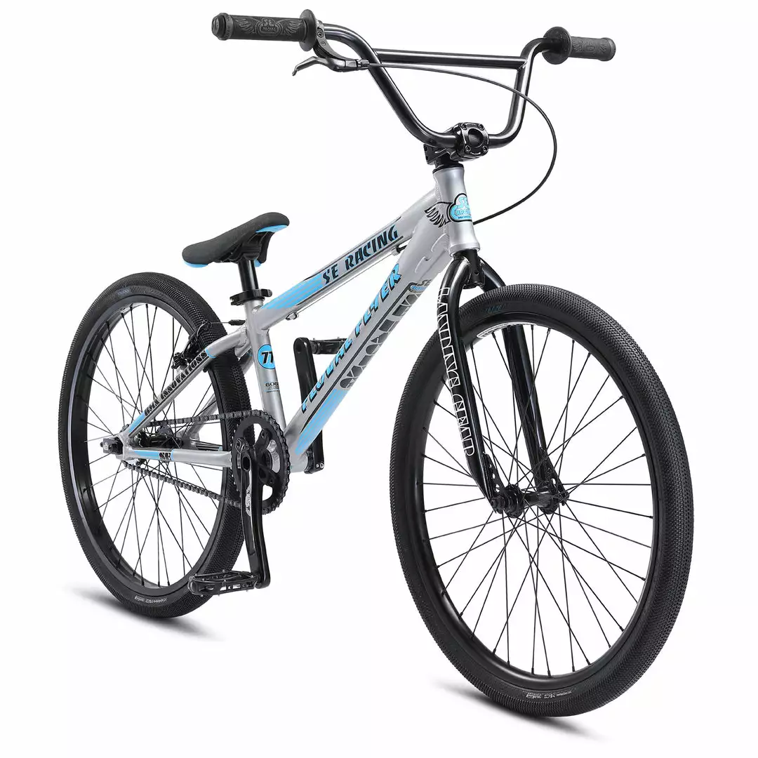 The SE Racing Floval Flyer Cruiser 24″2021 BMX Race Bike-Silver has proven over the years to be one of the fastest 24” cruisers on the track. The 2021’ model is built with a lightweight 6066 aluminum frame featuring a super-stiff bi-oval downtube, internally machined integrated head tube, and 3D-forged dropouts. Top of the line name brand parts including Alienation rims, Promax brakes and levers, Promax Impact stem, Vee Speed Booster tires, and an ultra-lightweight Pivotal seat and seat post. All of this only weighing 23.5 pounds. If you want to race, the pump tracks it is perfect.