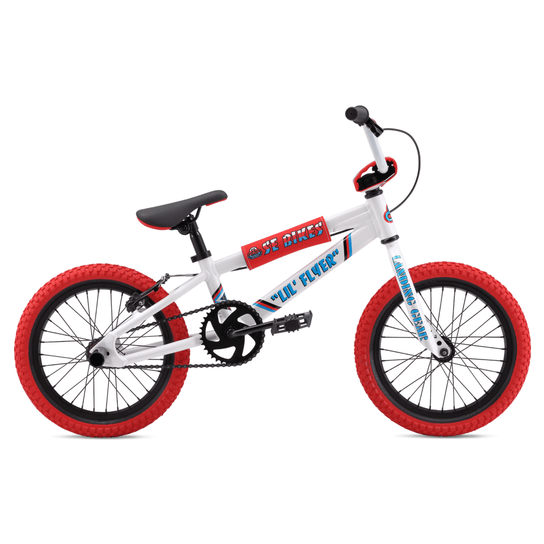 The SE Racing Lil Flyer 16″ BMX Bike-White is the perfect bike to spark the interest of your little BMXer. This lightweight aluminum bike comes in two wildly fun colorways and features a padset and wheelie pegs. The kids are the future; let’s get them on bikes!