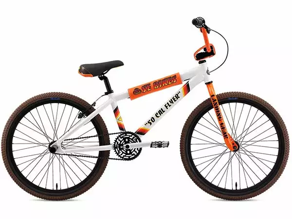SE Racing went berserk this year with a complete makeover of the SE Racing 2019 So Cal Flyer 24” Bike-White! There are three stellar new color schemes, upgrades and added parts galore. New this year are the Big Honkinish cruiser bars, super grippy Flyer seat, Vee Cub x SE tires, and new SE Bikes Life grips equipped with SE donuts. In addition, they’ve added a set of wheelie pegs and a newly designed SE Racing Life number plate. The So Cal sets the new standard for 24” wheelie bikes.