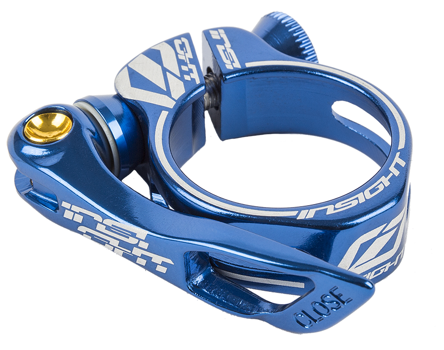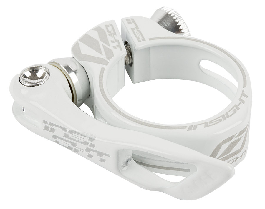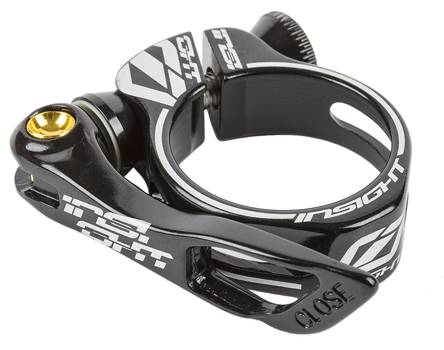 The Insight Quick Release Seat Clamp is made from aluminum and features a lightweight quick release lever that makes for easy seat post height adjustment. A milled out Clamp and minimal design helps keep the weight down to a very low 26grams. Each clamp has laser-etched logos, Alloy clamp hardware, and and east to adjust tension bolt.