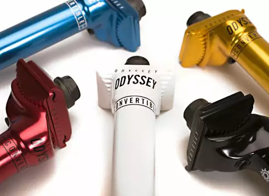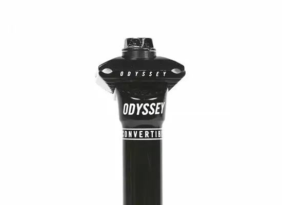 An uncut Convertible Post, without guts, weighs approximately 4.3 ounces. Its unique forged design allows the post to be slammed without leaving the seat excessively high. If you’re not interested in the offset, the guts will obviously work with all other Pivotal posts and Pivotal compatible frames as well. Rather than simply rebrand a zero-offset Pivotal post, ODYSSEY wanted to provide another option for riders to pick from when looking for more flexibility with their bike set up