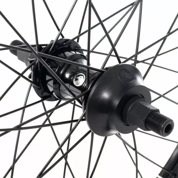 The Shadow Conspiracy Symbol Rear Wheel-36H-9T pairs the value and reliability of the Shadow Symbol cassette hub with the rigidity and strength of the Shadow Truss rim. Including a replaceable plastic non-drive side hub guard and laced 3 crosses to the wider, 38mm Truss rim, this wheel is ready for action.