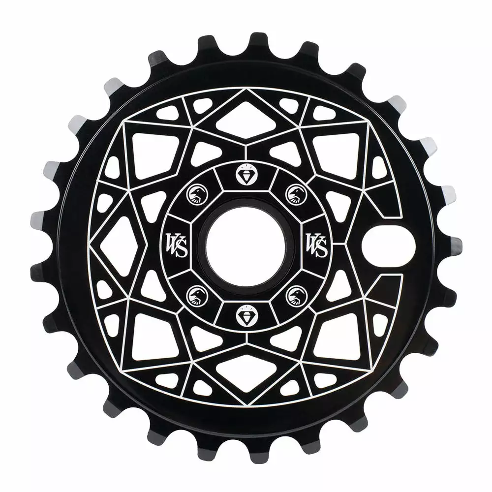 The Shadow Conspiracy VVS Sprocket combines CNC and stamp forging, giving it the best of both these worlds in the manufacturing process. Matt Ray was looking for a distinctive sprocket, and Shadow felt a sprocket this unique needed a look that stood out as well, with its laser and screen-printed graphics for that sleek look. Available in 25T and 28T versions, and a variety of finishes.