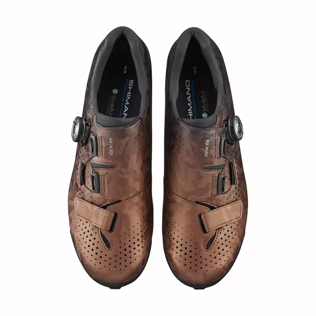 The Shimano RX-8 Clipless Shoe-Bronze is a lightweight yet durable shoe, engineered to give the rider improved stability and pedal performance. The sole is made of super stiff yet lightweight carbon composite with abrasion-resistant TPU lugs. The Shimano RX-8 Clipless shoe will keep you riding at peak performance without sacrificing style.