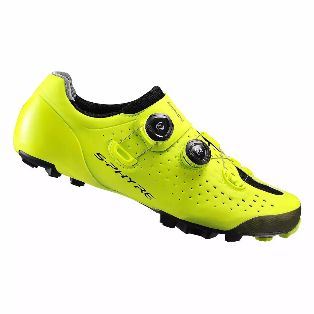 The Shimano S-Phyre XC-9 Clipless Shoes-Yellow are the pinnacle of off-road competition footwear, offering the best of the best in clipless shoe technology for BMX, Mountain Biking or both.