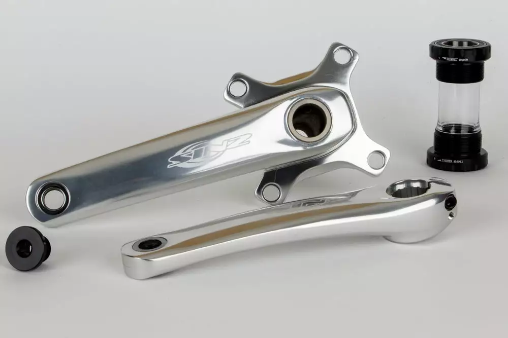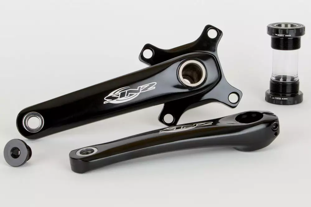 The Sinz Elite 2-pc Cranks feature hollow forged arms and a 24mm heat treated hollow chromoly spindle for strength and stiffness. The crank set also includes a sealed outboard bearing 24T bottom bracket. Â