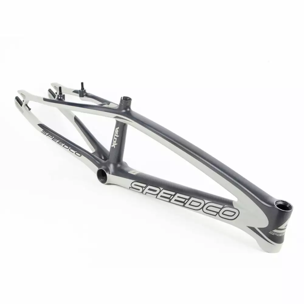 The SpeedCo Bicycles Velox carbon fiber race frames feature T700 Toray carbon fiber, the highest strength carbon for BMX frames. These are the top of the line. No questions asked. BMX frames have evolved with a nice touch finishing color of Matte Concrete. The use of this material allows the Velox to maximize rigidity and strength while keeping it one of the lightest race frames on the market today. It is what the track and rider needed. The SpeedCO Velox delivers in three sizes: Pro XL-L and Pro XXL with an extended 15.25″ rear chain stay as well as the addition of a 22″ top tube Pro XXXL.