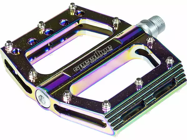 The Speedline Platform BMX pedals are light weight pedals with super thin profile for ultimate ground clearance. Thin body pedals lower the risk of “rolling” your pedal over which cuts back on slipping the pedal.
