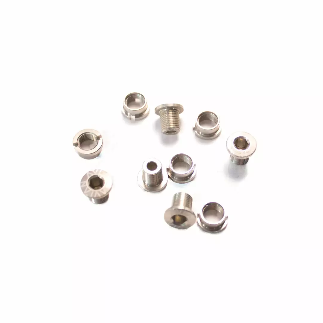 The AVIAN Alloy Chainring bolts are light weight and available in short and long, with laser etched logos. Package includes a set of 5 bolts/nuts.