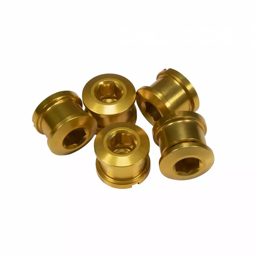 Insight offers 9 color choices of 5 Pack Alloy Chainring Bolts. Works with most 4 and 5 bolt chainrings. Alloy bolts are built to take all the abuse and last a long time!