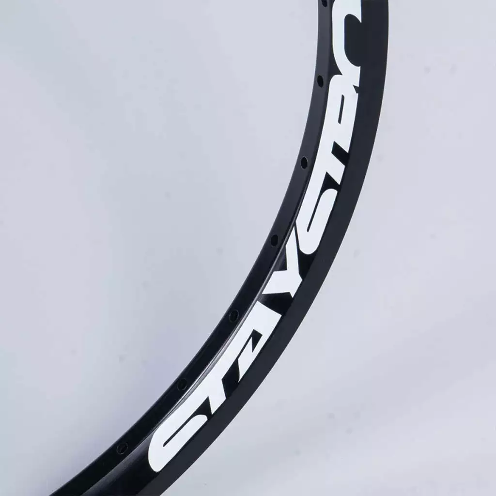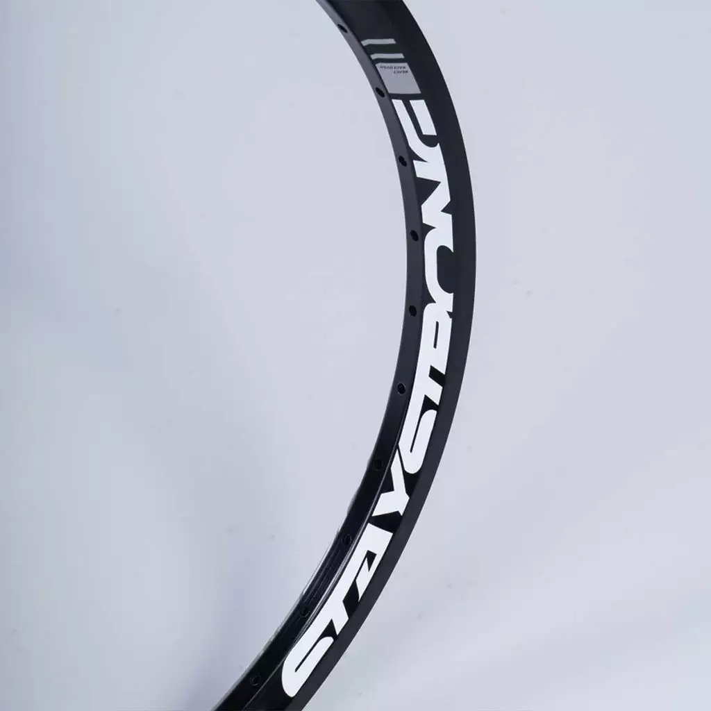 The Stay Strong Reactiv BMX Race Rim-Front-24×1.75″ is a great way to upgrade an otherwise “okay” race bike into something more befitting your champion racer. Made from lightweight alloy with a sleeved joint. Classic black with white graphics. This being a “front” rim, it has no braking surface. So if your kid is an old school caliper braker then they’ll need to pair this with a “rear” rim. If they are a disc braker then get two of these and call it a day.