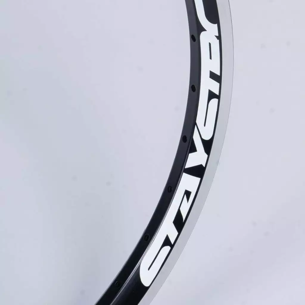 You know that Stay Strong makes the best rims around so why not get in on the good stuff with the Stay Strong Reactiv BMX Race Rim-Rear-24×1.75″ This aero-profile, alloy race rim has a 36 hole pattern and a pinned joint. The white Stay Strong “Cut Off” graphic looks striking on the black anodized metal. This rear rim has a CNC braking surface for caliper style brakes.
