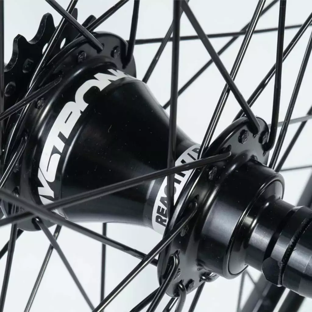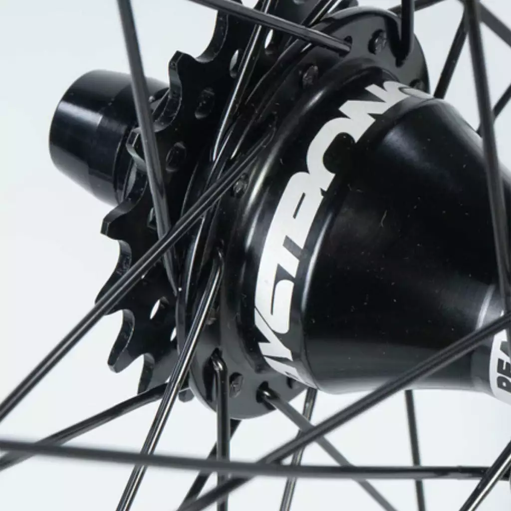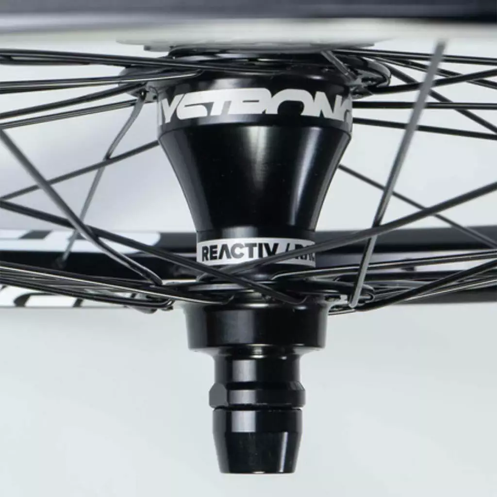 You know that Stay Strong makes the best rims around so why not get in on the good stuff with the Stay Strong Reactiv BMX Race Wheelset-24×1.75″ The aero-profile, alloy race rims have 36 hole patterns and pinned joints. The white Stay Strong “Cut Off” graphic looks striking on the black anodized metal. As with most wheelsets the rear rim has a CNC machined braking surface for those of the caliper brake persuasion. These top line rims are professionally laced up to Stay Strong Reactiv hubs with 10mm axels. The rear hub has 6 pawls, 180 points of engagement, and comes with a 16T cog. Get ‘em while they’re hot!