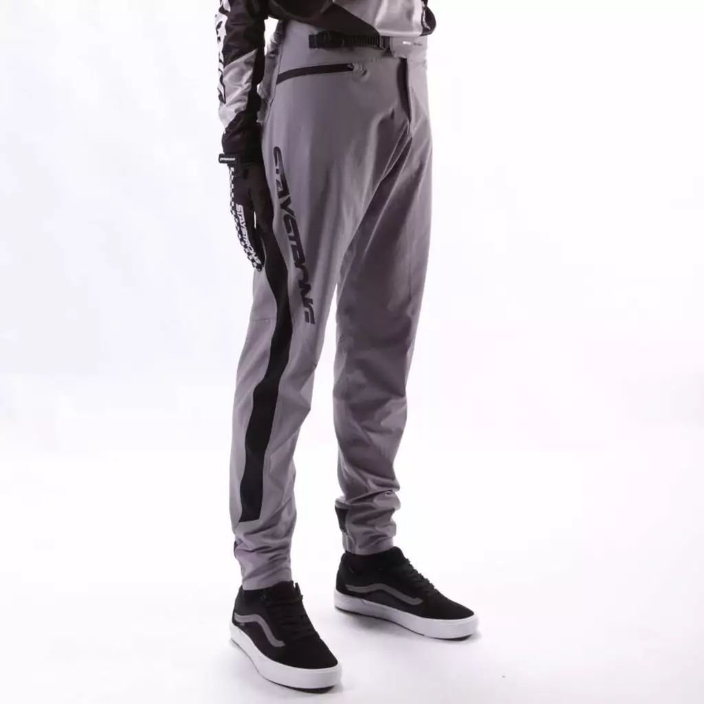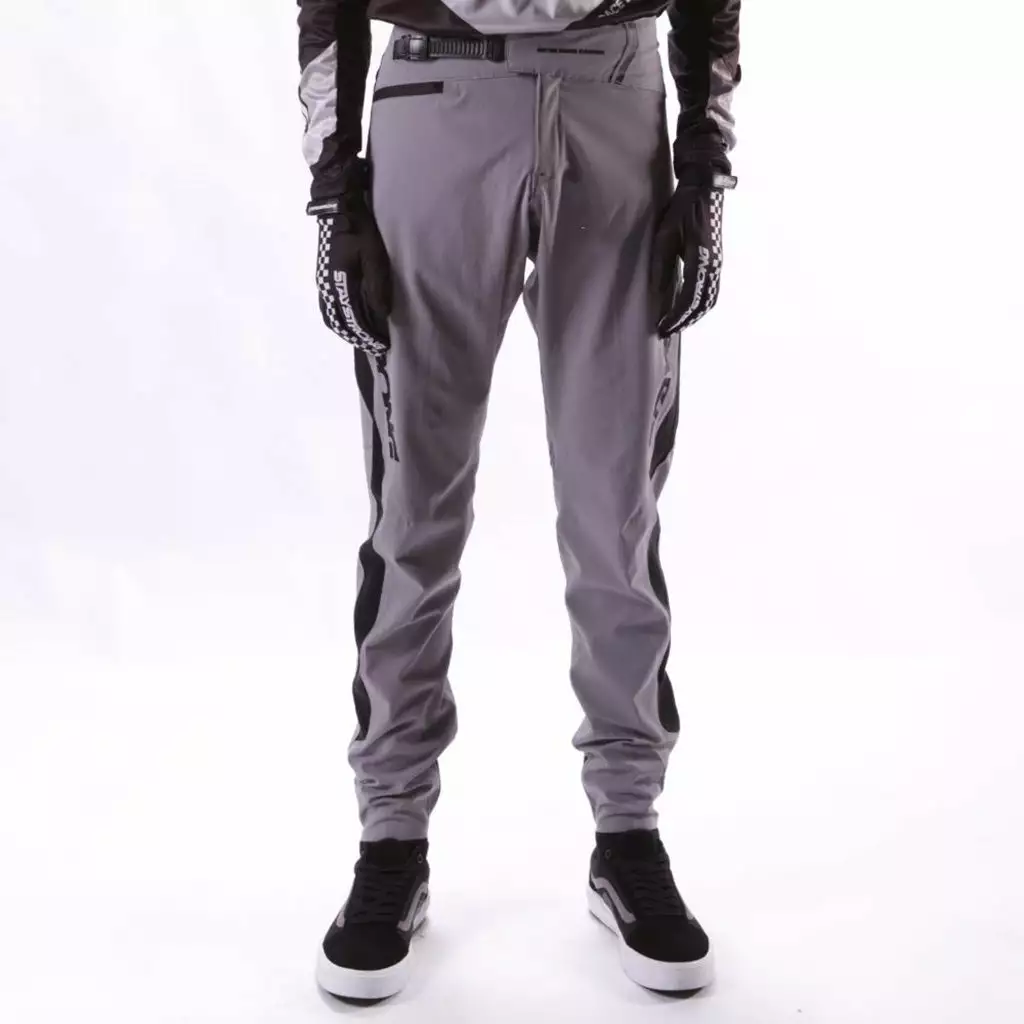 The Stay Strong V2 Race Pants-GreyBlack at J&R Bicycles were updated with design features to improve fit and then heavily tested by the pros at Stay Strong. The newly added adjustable waistband with race-ratchet closure keeps things secure and comfortable and a hidden zippered pocket keeps your valuables secure while you ride. These high-quality race pants are designed with a slim fit and tapered lower leg with stretch ankle closure to keep you comfortable and performing your best.