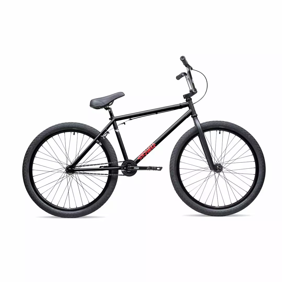 The Stranger Creeper 26″ BMX Freestyle Bike-Matte Black/Chrome is an all-around chromoly wheelie machine just waiting for you to take it out on the streets. Stranger bikes are designed by the people who ride them, so you know the bike will be dialed in and with with a frame that is a bit bigger you know this beast can take the pain. The Creeper features a bunch of aftermarket parts from Primo: Primo sealed headset, Primo JJ pedals, Primo 510 chain, and 26 x 2.35″ Primo Wall tires. All the bearings on this bike are sealed, so no worries about any roughness…everything will be smooth like Exlax. To protect your chain and sprocket there is a Primo Omniguard 28T sprocket because they know you won’t be using this bike just for wheelies, right?