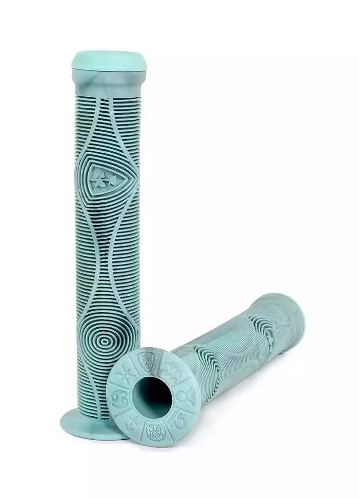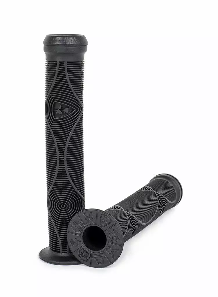 The Genetic Grip was designed with Nick Bullen to include the unique details that suit his riding style as well as provide the everyday rider an extraordinarily functional and great feeling grip. Nick designed a longer grip to match the popularity of brakeless, uncut, wide bars. With the increase of barspins, we offer a small thin flange that does not affect the catch of the errant throw of the bars. An amazing rib pattern with Nick Bullen designed graphics bring this grip into a category of its own.
