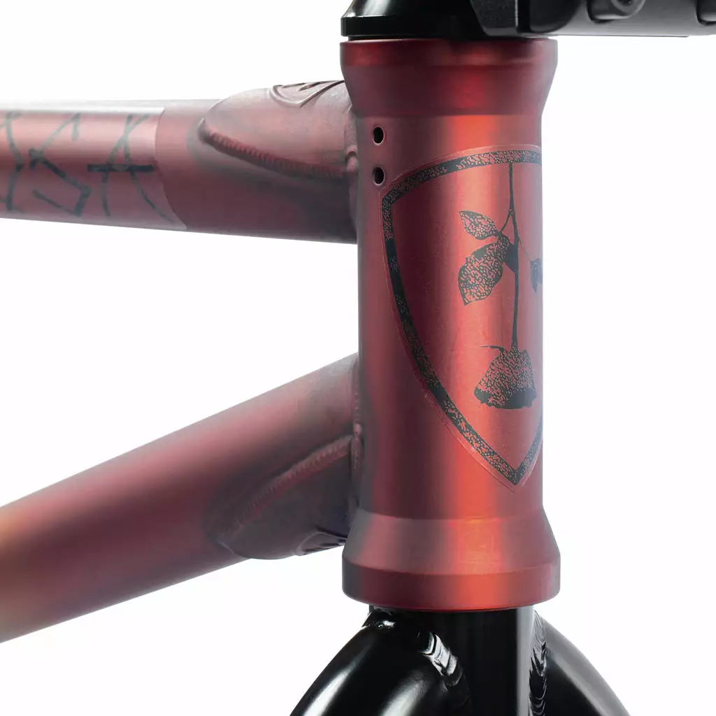 The Subrosa 2022 Letum 20.75″TT BMX Freestyle Bike-Matte Trans Red Fade is ready to take all the freestyle pounding you can throw at it. The full chromoly frame is fitted with a Shadow Sprocket with guard and four Rant LL Cool pegs all with hub guards protecting Rant hubs: the front has their Party On V2 Sealed Female Axle while the back has the Moonwalker II Sealed Freecoaster. Shamone!