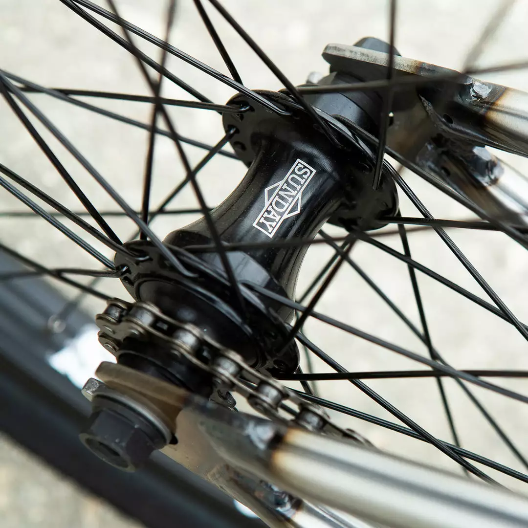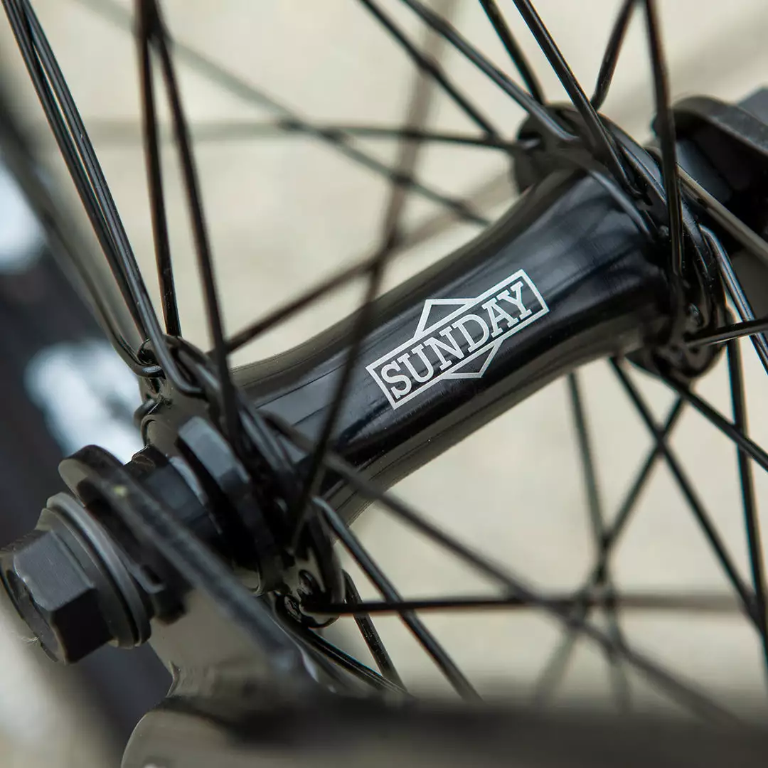 - Rear Hub: Sunday 36H, sealed, 3/8″ female axle w/ 9T Driver