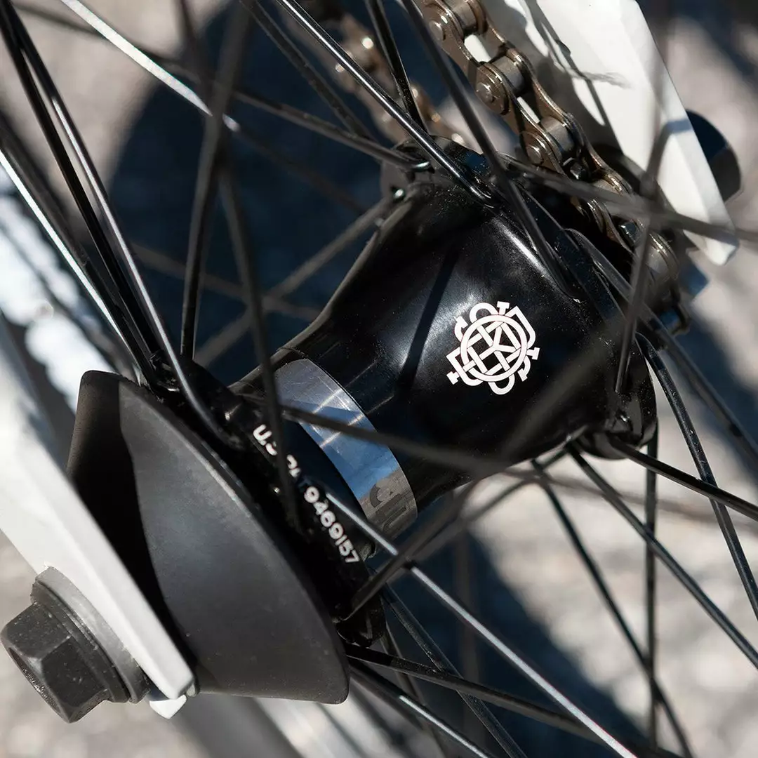 - Rear Hub: Odyssey Clutch v2 freecoaster, 36H, 14mm female axle w/ 9T driver, LHD or RHD, non-drive side plastic guard
