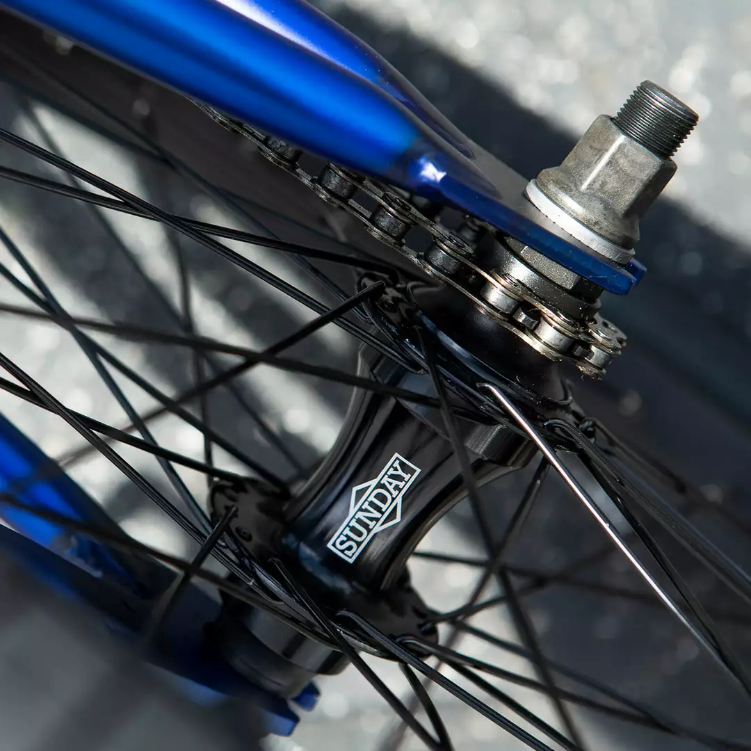 - Rear Hub: Sunday 36H, sealed, 14mm axle w/ 9T Driver