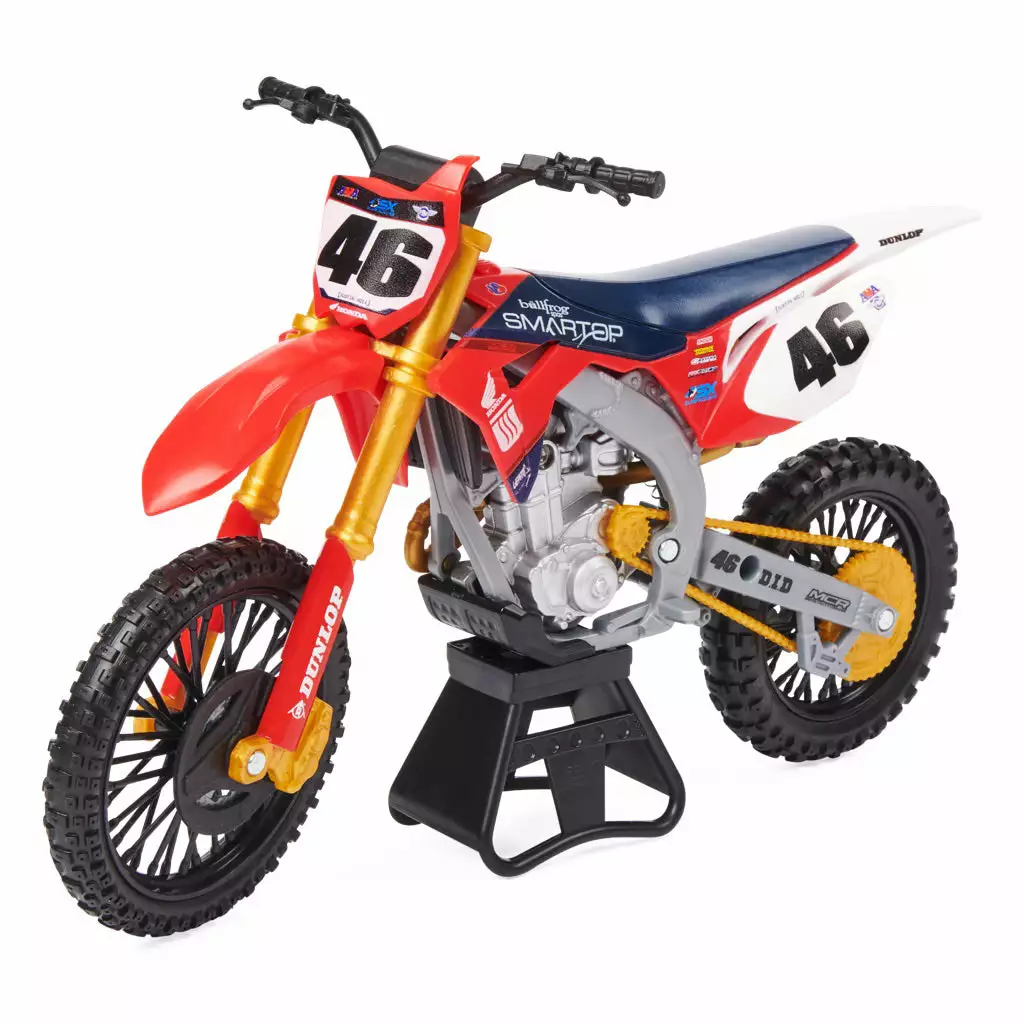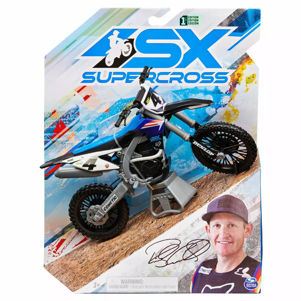 The Supercross One Tenth Scale Die-Cast Motorcycle is a great way to take the excitement of Supercross with you or as an addition to a valued collection. And while it is a mini replica of the real thing, this little motorcycle is loaded with realistic details including a metal die-cast motor and life-like graphics. This Supercross model motorcycle is definitely display-worthy which is easy to do with the included display stand.