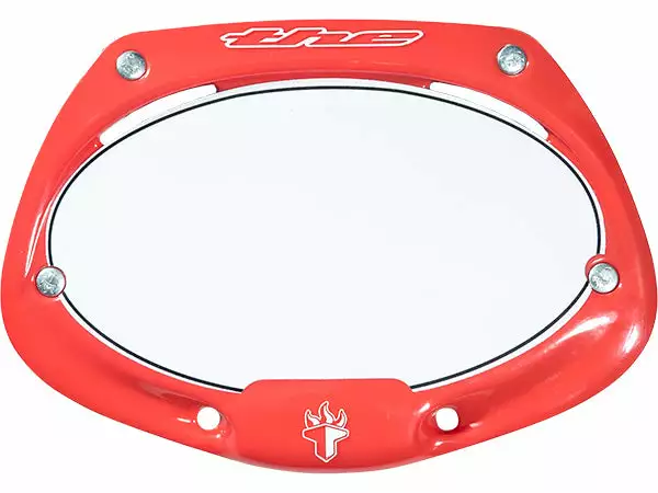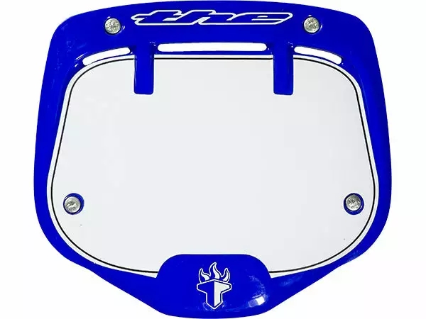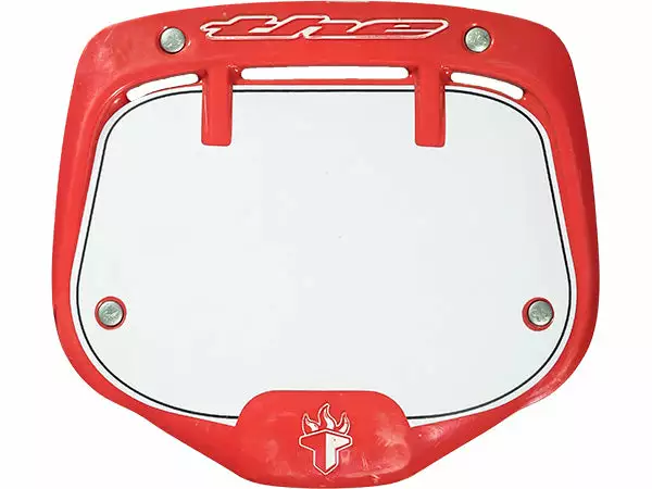 The T.H.E. number plate is the official number plate of the UCI Supercross Series and the 2008 and 2012 Olympics. Its unique, technically innovative, 3D injection-molded shape makes everyone who uses it look extra good on the track. Lightweight with a hook-and-loop attachment system it’s easy to put on and take off. The “Mini” size is also designed for cruiser bars. Typically the Mini plate fits perfectly on 6.5″ bars or smaller. For bars taller than 6.5″ use the “Pro” size plate.