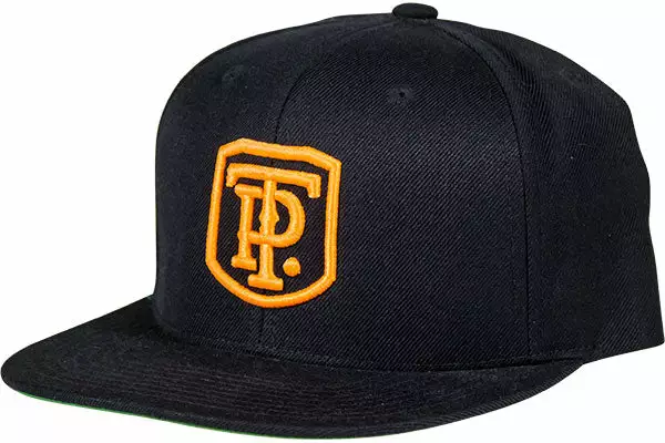 Black Snapback hat with orange embroidered logo One size fits most