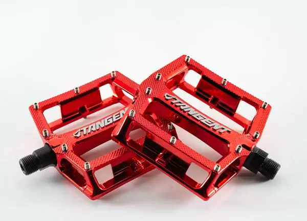 The Tangent Platform Pedal has an alloy body and full chromoly spindle. The low profile concave surface assures maximum comfort perfect for race or trails. And for “no-slip” grip it uses micro knurling and replaceable threaded pins. All this makes the Tangent Platform Pedal one of the most economical pedals on the market!