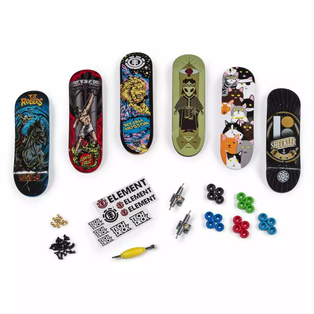 The Tech Deck Sk8shop Bonus Pack-6 Pack includes everything you need to build out 3 custom Tech Deck setups including extra boards, grip tape and wheels. Every one of these authentic fingerboards features detailed graphics from the biggest skate companies. Build these boards any way you like and keep an eye out of the golden trucks hidden in select packs.
