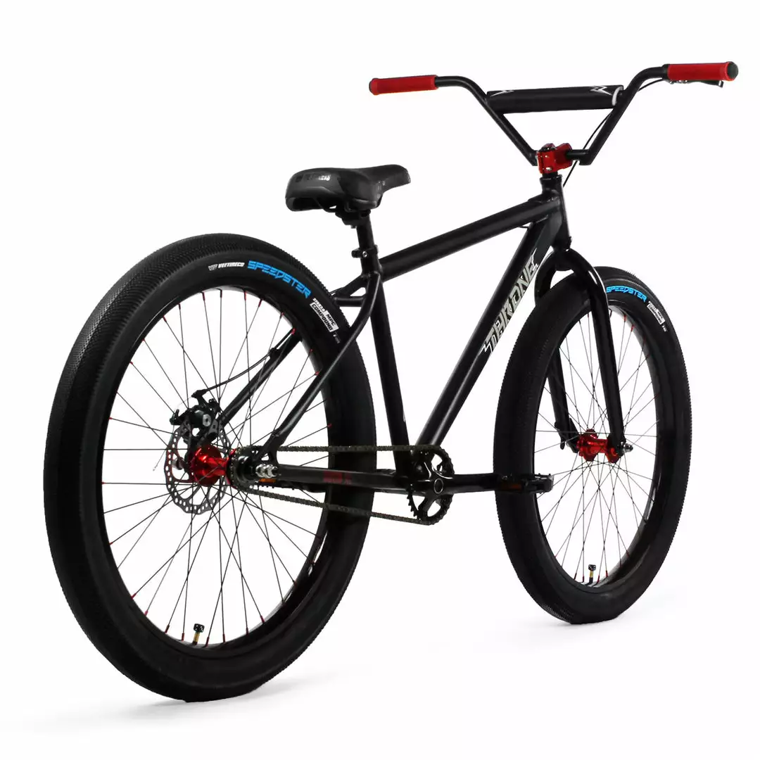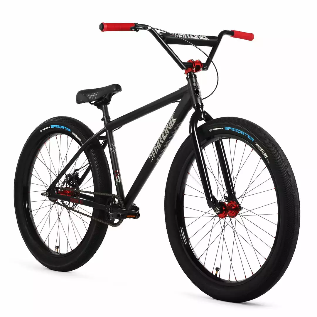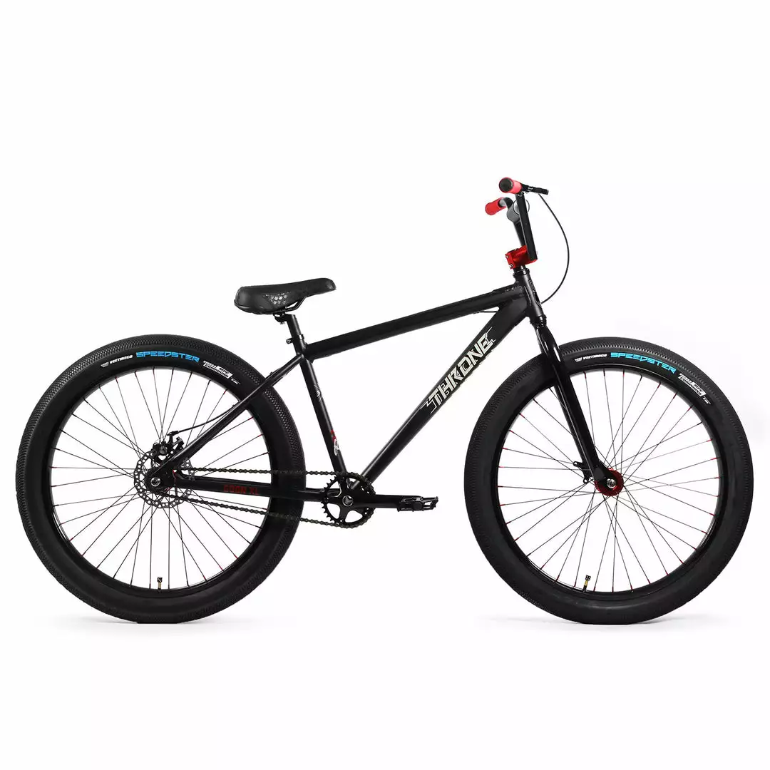 The Throne Cycles “The Goon XL” 27.5+”2021 BMX Freestyle Bike-Deezy Black is the perfect bike to do wheelies and other freestyle tricks off the radar. Coming in smooth on the throne, but boldly like a goon with the black colorway and the red accents on the hubs, grips, stem, and spoke nipples. No wonder why the Goons say they run the streets. The fat tires totally help maintain balance on this gentle giant. The upgrades from 2020 include improved cranks, seats, and the four-piece handlebar. It is a sturdy handlebar. Here’s to more wheelies in the future.