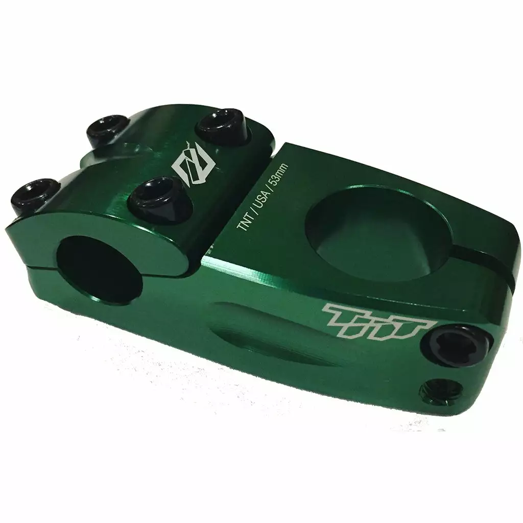The TNT Top Load Stem at J&R Bicycles is CNC machined in the USA from premium aircraft-grade 7075 aluminum for maximum lightweight strength and durability. This tried and trusted top load design features 4 bolts on the handlebar clamp and 2 bolts for the steering tube to ensure you don’t experience any slippage. Available in a variety of colors.