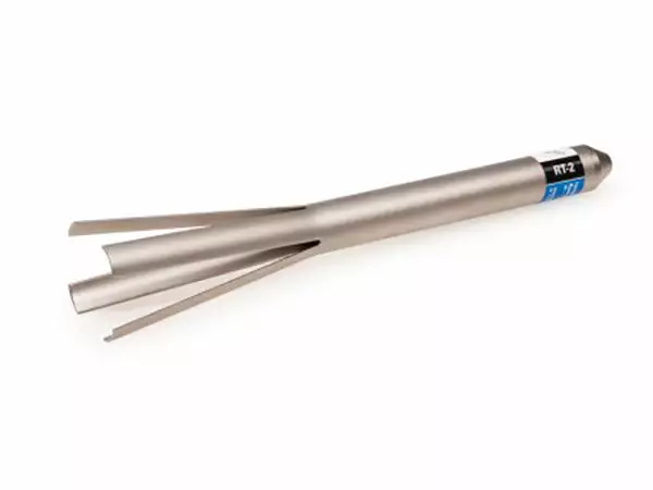 The RT-2 Head Cup Remover makes headset cup removal easy. The tool is pulled through the frame until the flared ends snap in behind the cup. A blow on the tool head removes the cup.