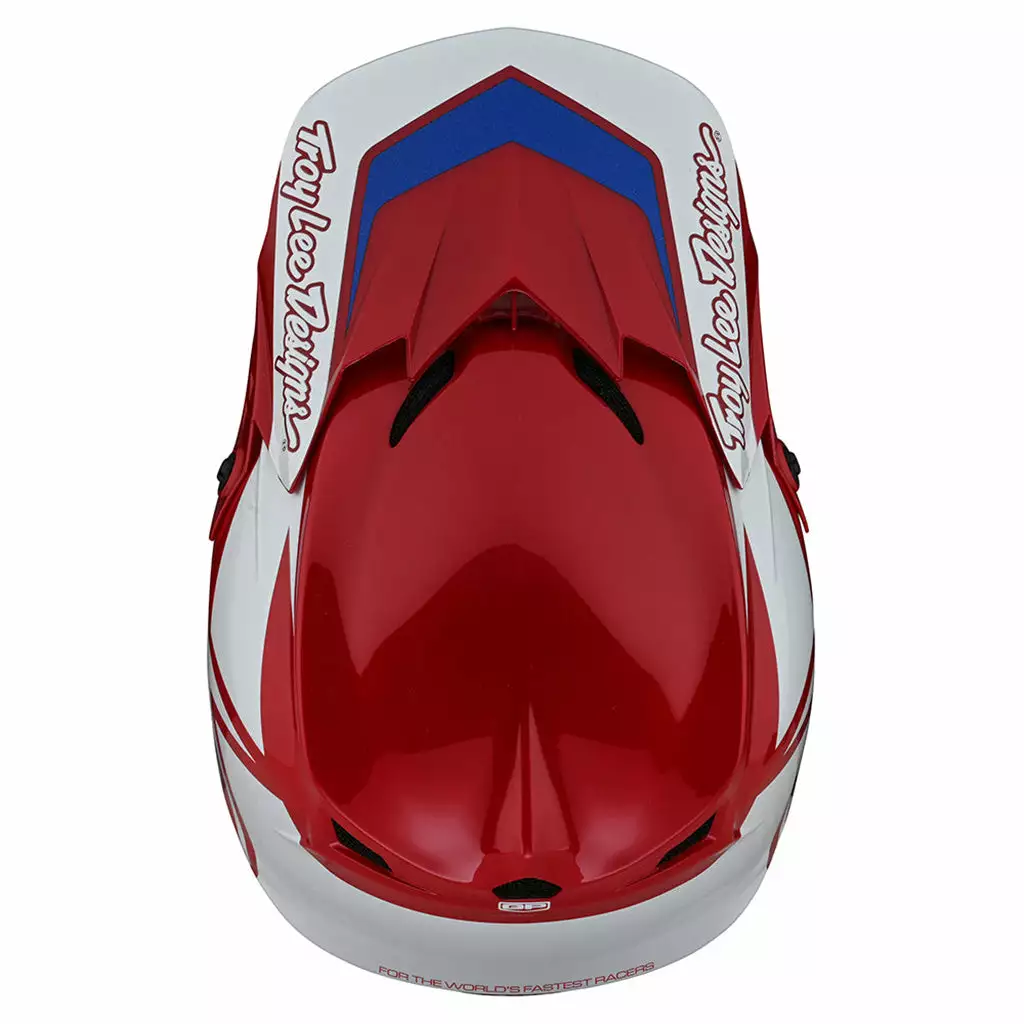 The Troy Lee Designs GP Overload Helmet-Red/White is both lightweight and durable with a 1500-gram polyacrylite shell. It features 16 air vents to keep your noggin cool while pedaling hard. For added safety there is an emergency release system for first responders. Comes in three shell sizes to fit old heads, small heads, big heads, bald heads. A Troy Lee Designs helmet sock is included.