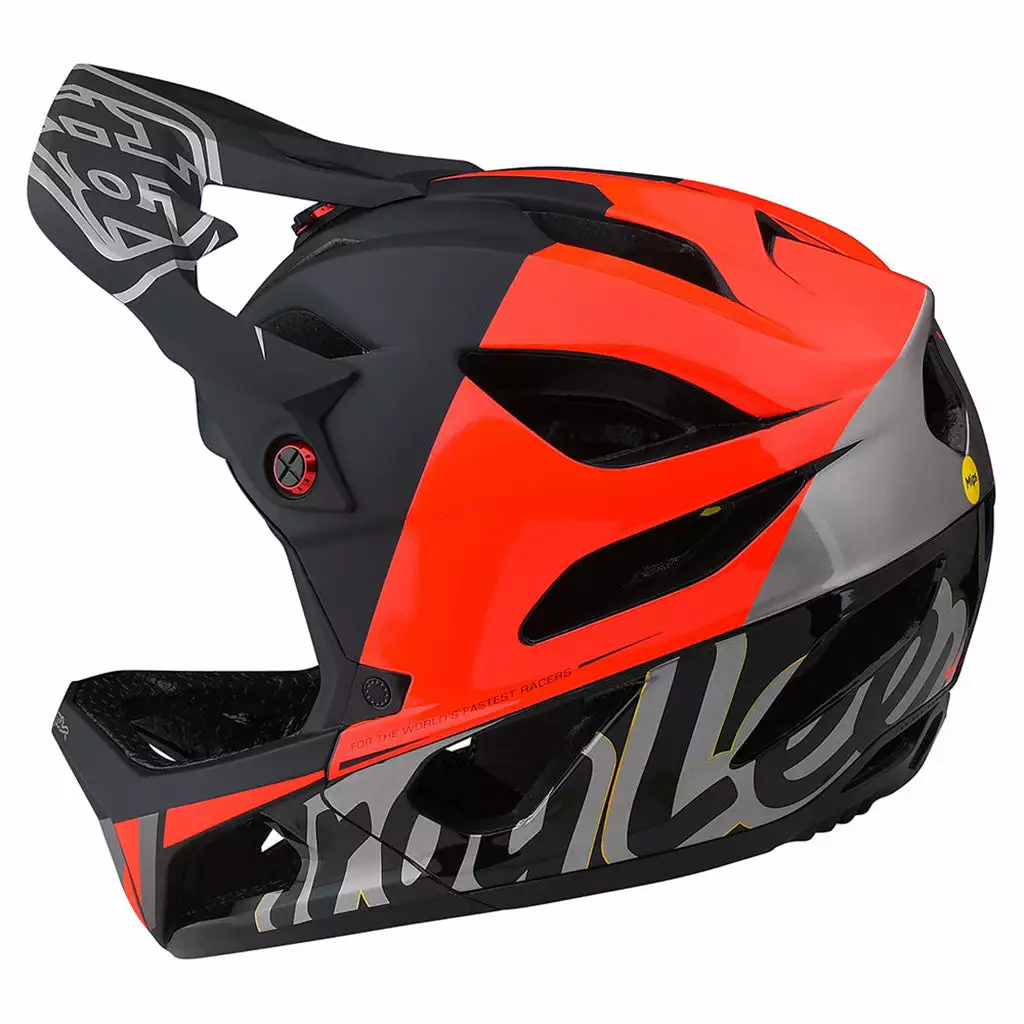 The Troy Lee Designs Stage MIPS Nova Helmet-Glo Red is a fiber reinforced Polylite shell and Polyacrylite chin bar w/EXOskeleton. This makes for a strong design without the helmet feeling like you’re carrying around the weight of the world on your head. Features protection for all the impacts: Low speed covered by EPP, while EPS handles high speed, and MIPS for those off angle impacts. 11 high-throughput vent holes in the front will send the cool air in, while 14 (yes, fourteen!) exhaust holes get rid of all the hot air out the back. The liner is an X-Static material that is moisture-wicking and quick-drying, but perhaps most important, odor-fighting. A Fidlock buckle rounds out the user-friendly design. Includes a sweet drawstring helmet bag to protect your protection.