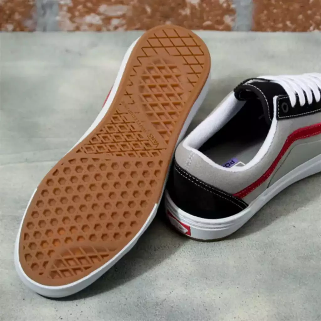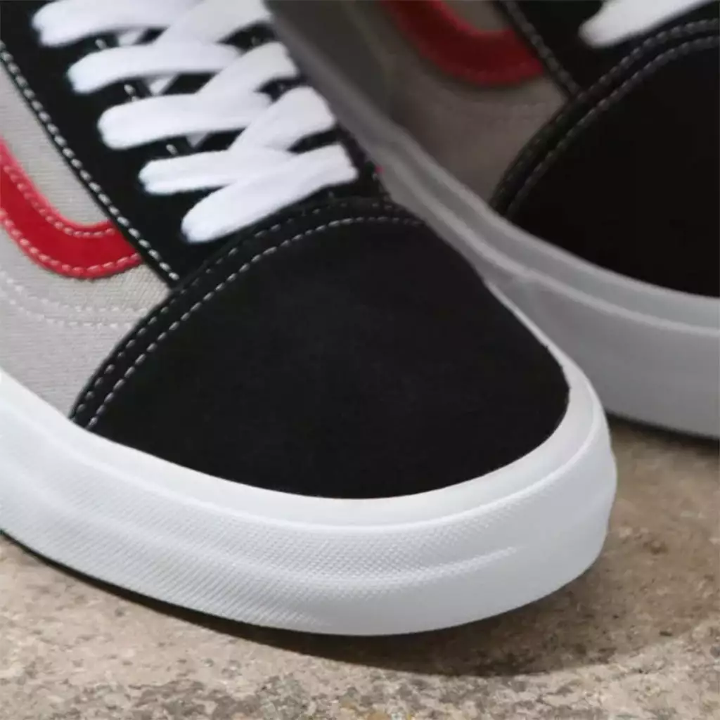 The Vans Old Skool BMX Shoes-Black/Gray/Red at J&R Bicycles offer the classic Vans low-top style with added signature design elements made just for BMX riders. Built with sturdy suede and canvas uppers, the body of this shoe is rugged yet comfortable at the same time. Popcush sockliners provide the right amount of cushion and Vans wafflecup soles allow for excellent pedalfeel and grip.